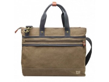 Stylová dámská taška Troop London z přírodních materiálů, kterými jsou bavlna a pravá kůže, doplněné o mosazné přezky. Taška má více kapes pro jednoduchou organizaci věcí. Díky odnímatelnému ramennímu popruhu je možné ji nosit jak přes rameno tak také v ruce za pohodně držitelné rukojeti.